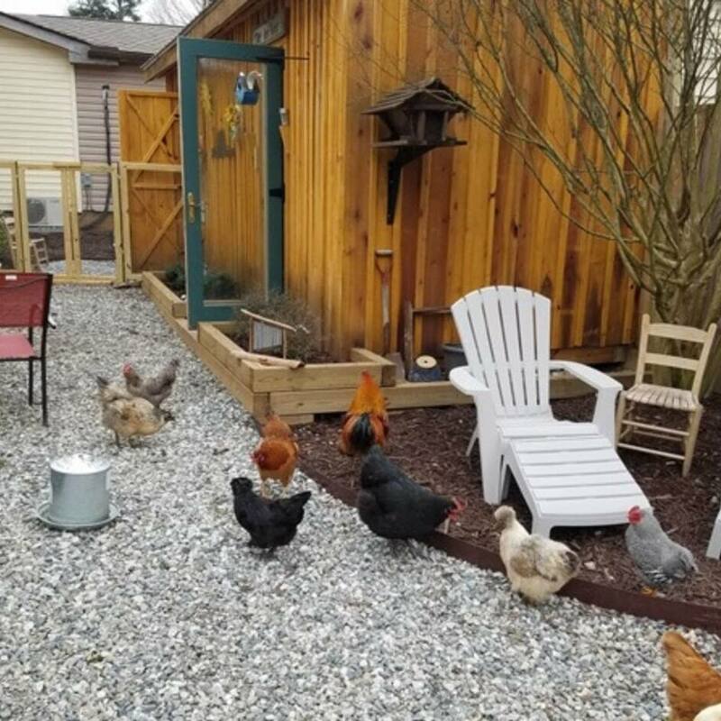 Step outside to your private deck, where you can sip your morning coffee or unwind with a good book. If you’re in the mood for socializing, venture to the spacious deck at the main Lodge, featuring a fireplace for warmth and a hot tub, available by reservation. Here, you can soak in the atmosphere, enjoying the serene surroundings and the gentle clucking of our chickens.